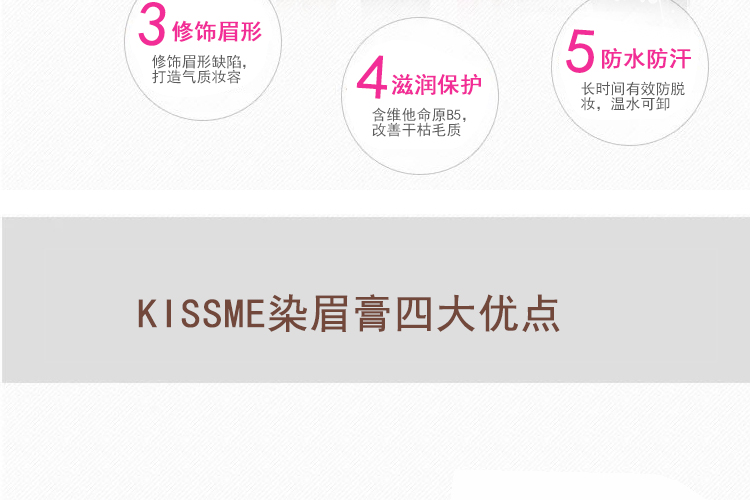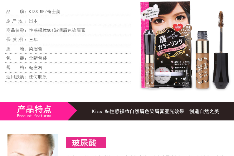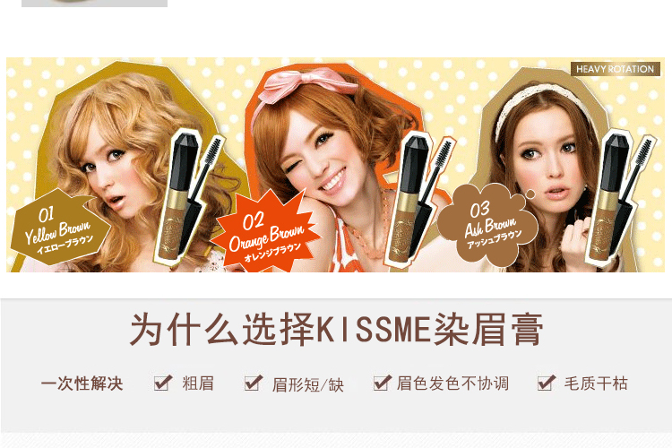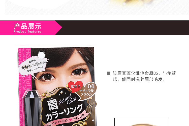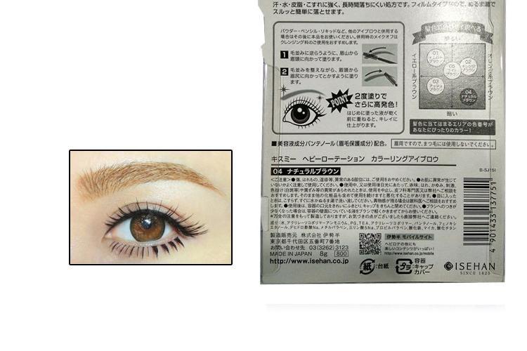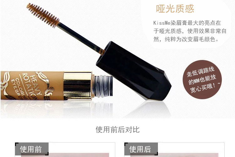 日本超人气的品牌染眉膏~眉毛粗或者很黑的mm福音~平日的眉粉或者眉笔已经不足以遮盖以及修饰眉型~所以建议眉毛粗/黑的mm可以眉粉+染眉膏的方式来画眉~上色度超好!完全掩盖住本身的眉毛颜色~