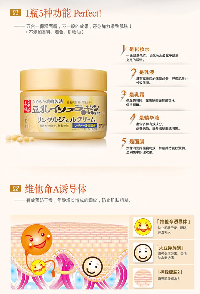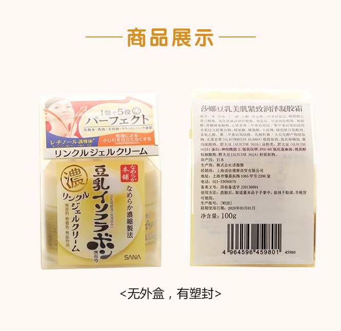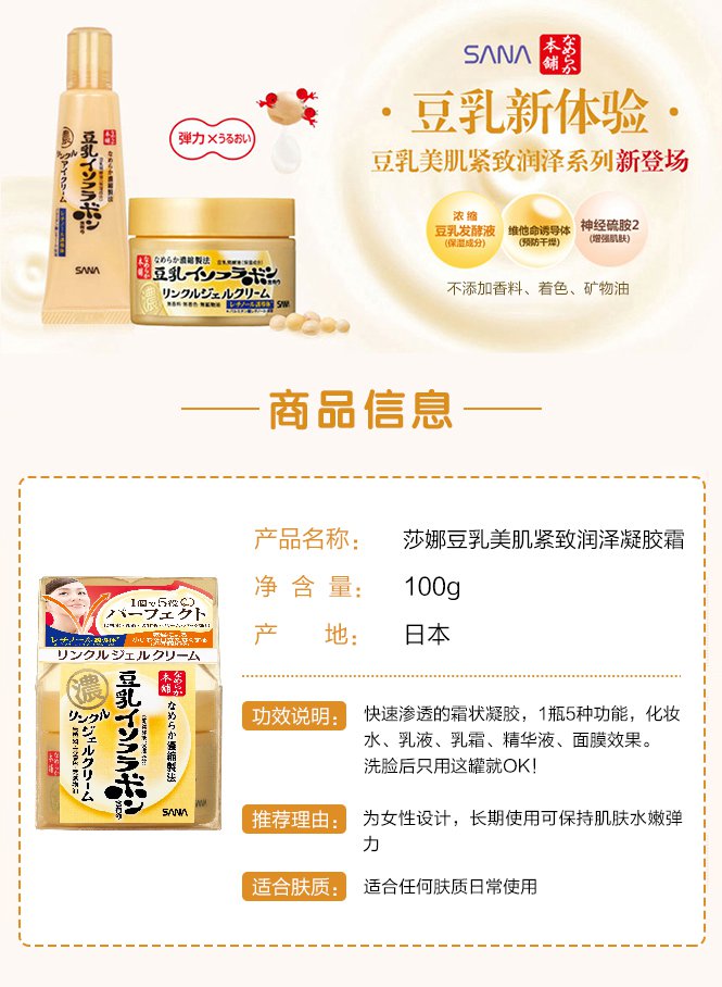 日本SANA莎娜 豆乳美肌紧致修复凝胶霜补水保湿懒人面霜 五效合一 100g