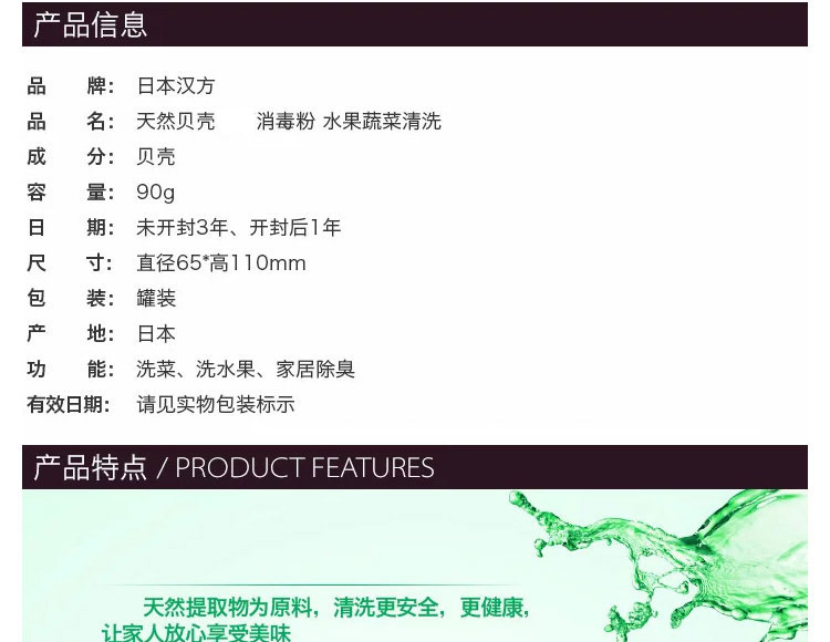 日本汉方水果蔬菜清洗剂 洗菜粉贝壳粉去除农药残留除菌 90g