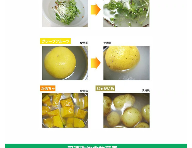 可溶解蔬菜、水果表层残留的农药、细菌、石蜡和防腐剂。家庭常备清洗良品,帮您订制安全餐桌,守护家人健康。