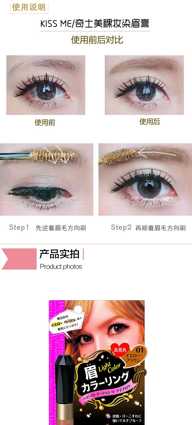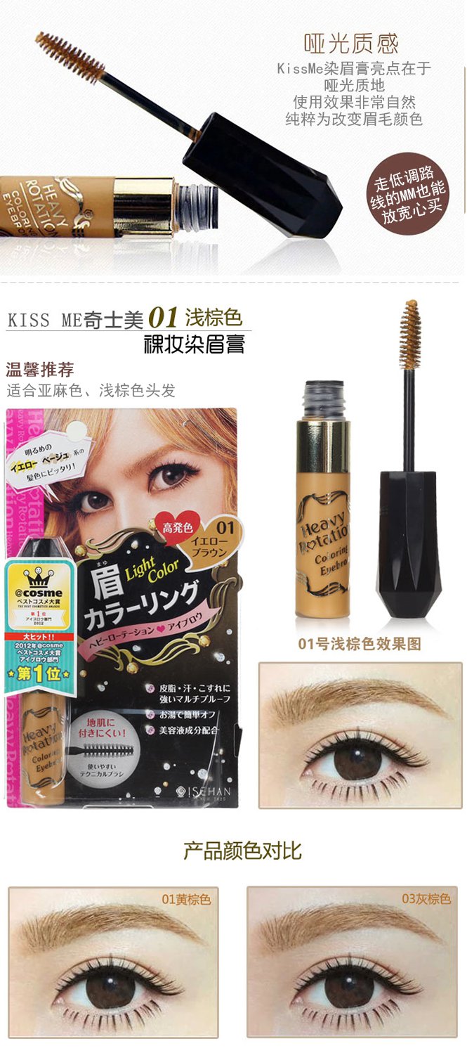日本ISEHAN KISS ME奇士美 HEAVY ROTATION染眉膏 01卡其棕