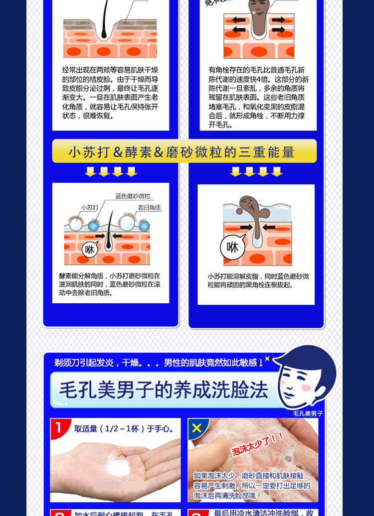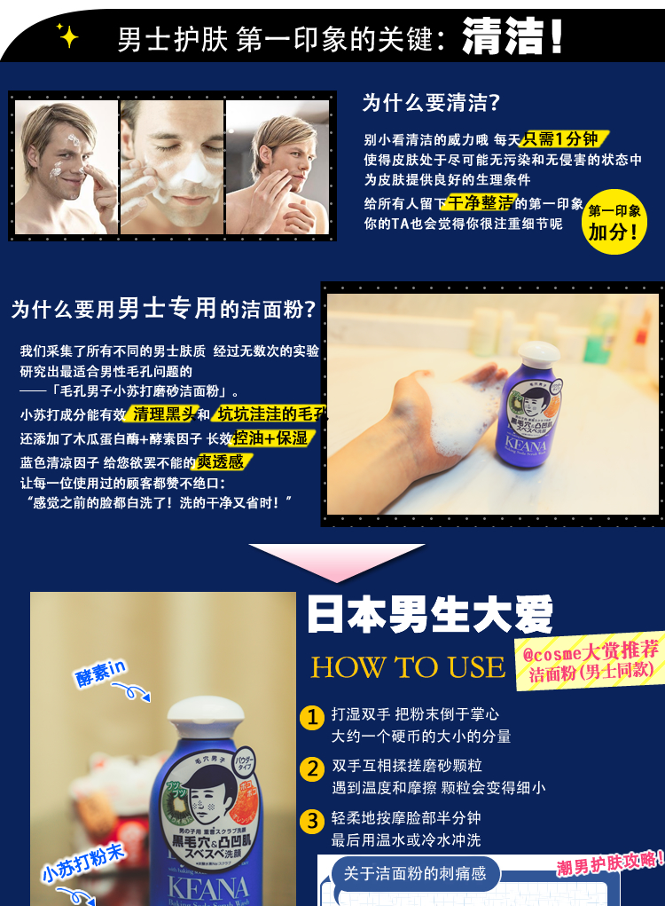 黑头顽固,橘子皮&草莓鼻?日本人气 “小蓝瓶”,美妆杂志推荐的毛孔清洁利器,石泽毛孔抚子男士专用小苏打洁面粉!温和小苏打+保湿氨基酸,深度清洁又保湿,摩擦摩擦 “粉”除毛孔垃圾。反“孔”清洁大起底,拍照美颜不NG!