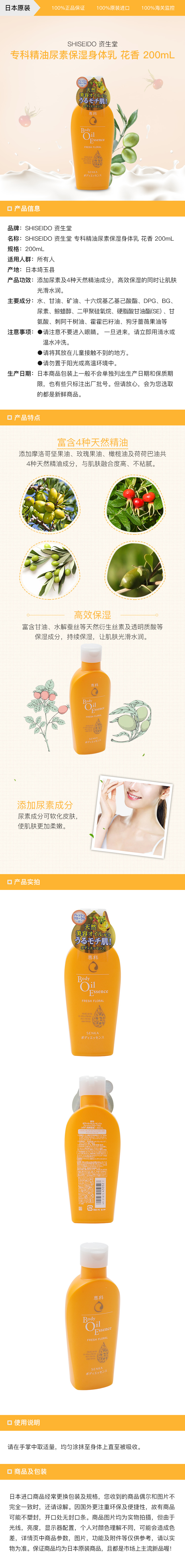 日本SHISEIDO资生堂 SENKA专科高保湿美容精华油身体乳 #清新花香 200ml